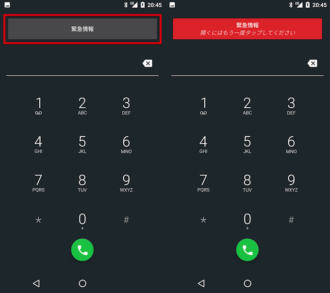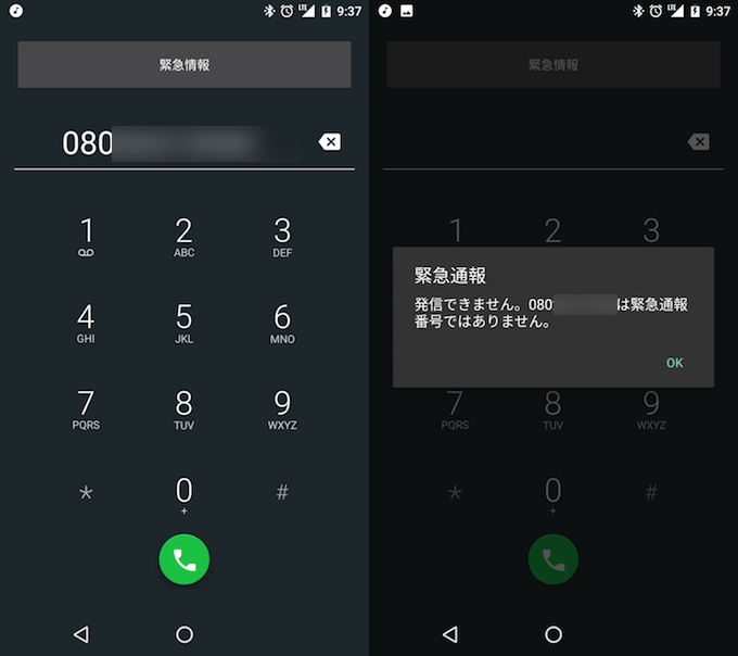 “紧急呼叫”功能被日本法律(电信商业法)规定为“在日本使用的手机上必须具备紧急呼叫功能的要求”,并且不能作为标准 Android 设置被隐藏。