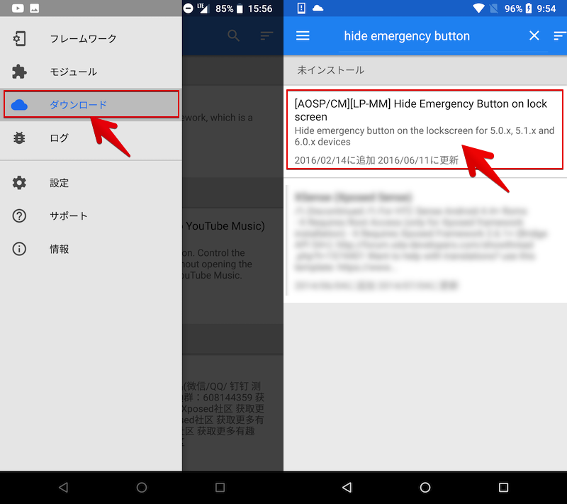 从“Xpose安装程序”菜单中打开“下载”,搜索“在锁定屏幕上隐藏紧急按钮”,