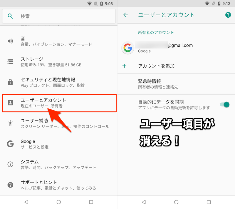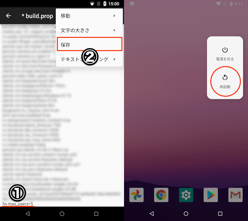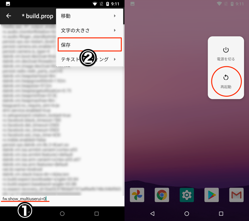 (右)如果编辑系统文件“build.prop”,多帐户设置将会消失。