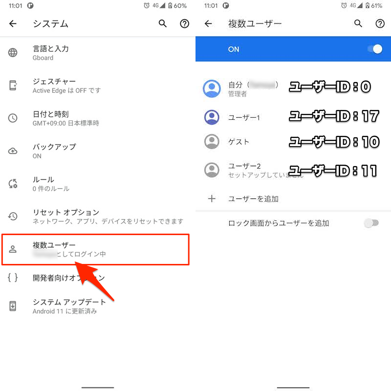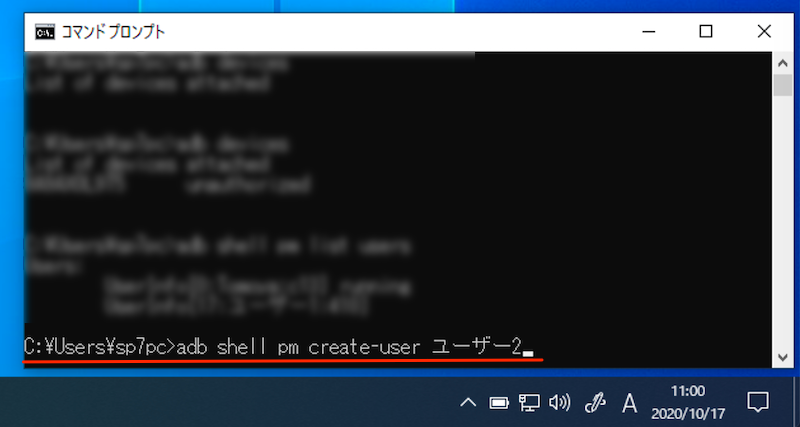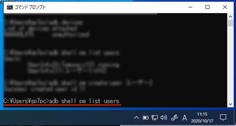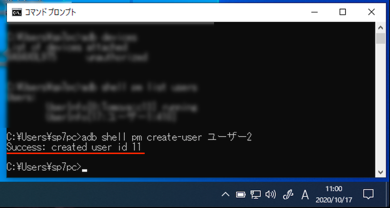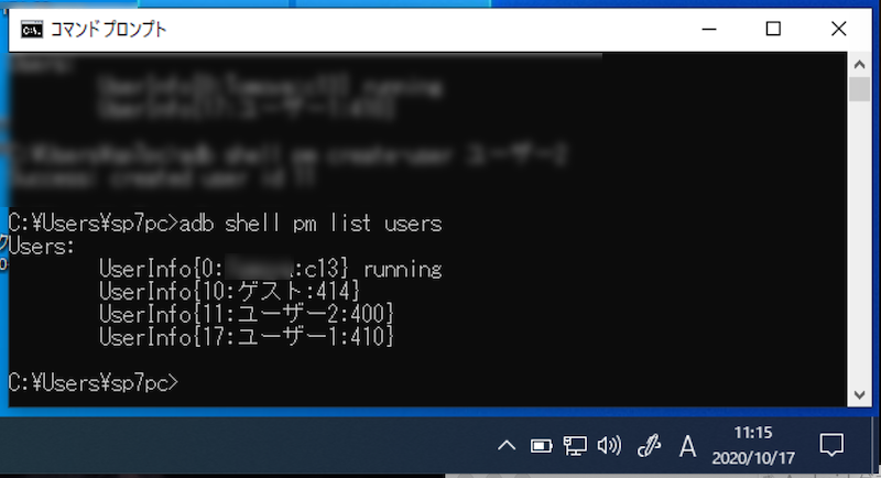 首先,使用以下 adb 命令查找现有帐户的用户 ID。