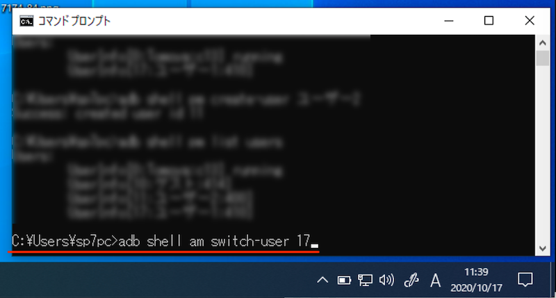 之后,您可以使用以下 adb 命令并输入目标帐户的用户 ID 来切换用户。