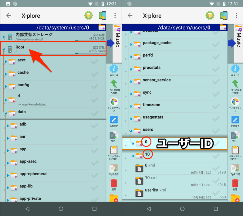 您还可以使用 X-plore 文件管理器查看以下位置的文件来检查您的用户 ID:
