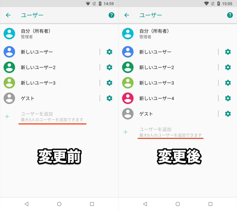通常,可以添加的用户数量最多为 3 个(左),但可以增加到 4 个(右)。