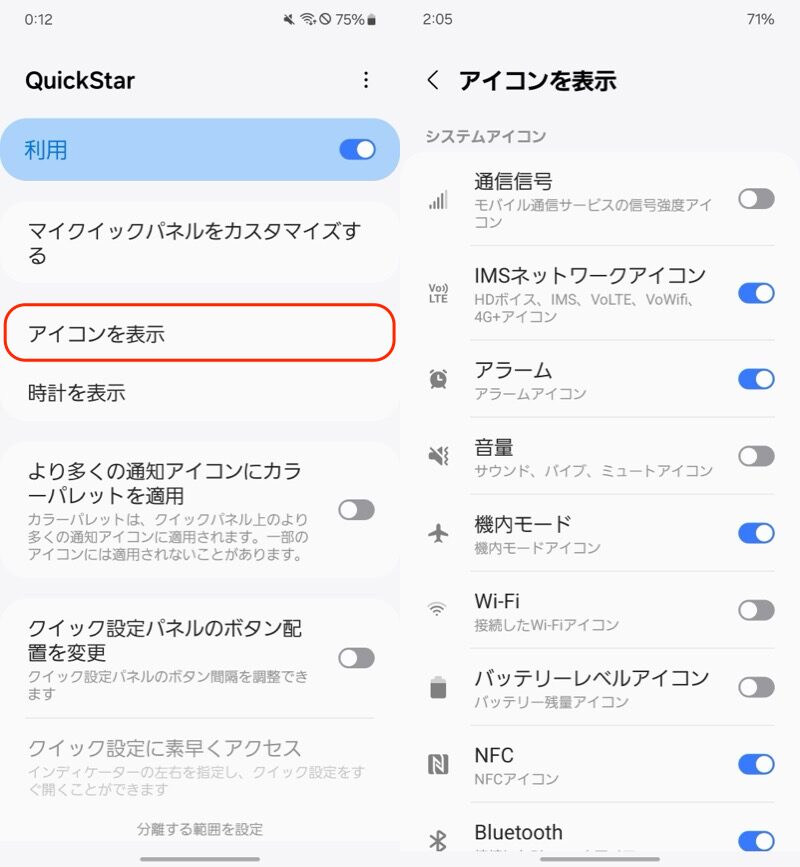 快星您可以自定义快速设置面板和状态栏的外观/行为。