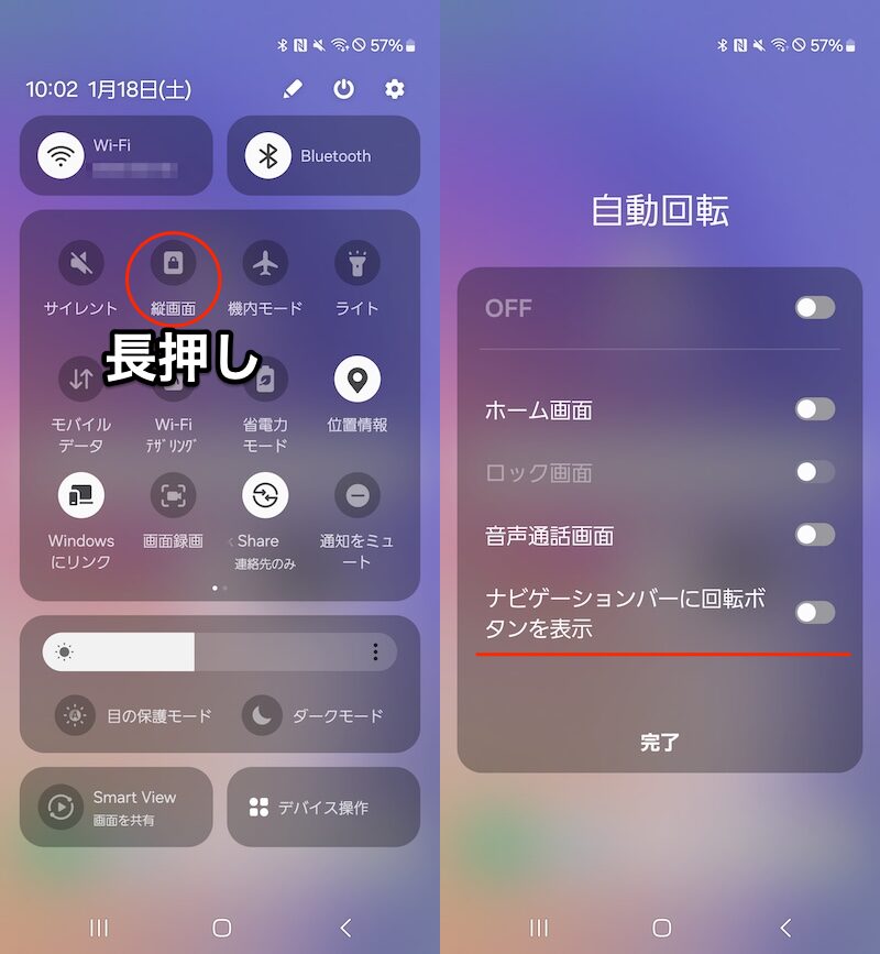 例如,对于 Galaxy 系列,按住快速设置面板上的“自动旋转”图块,在导航栏中显示旋转按钮如果你把它关掉就可以了。