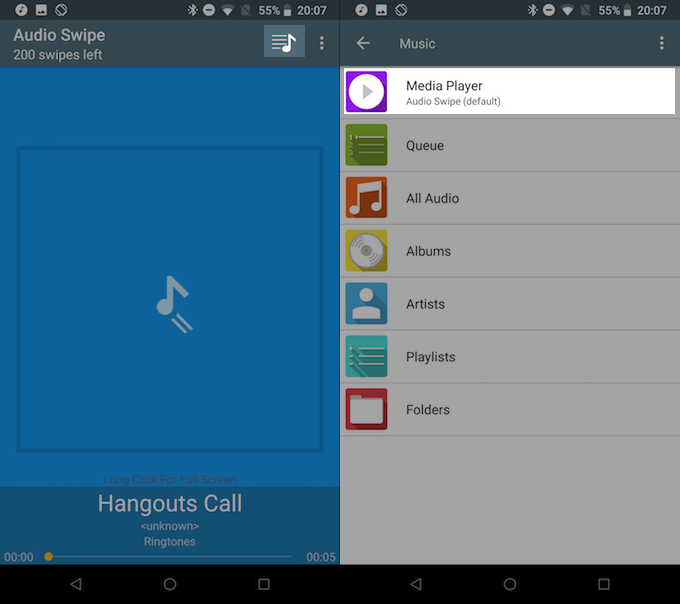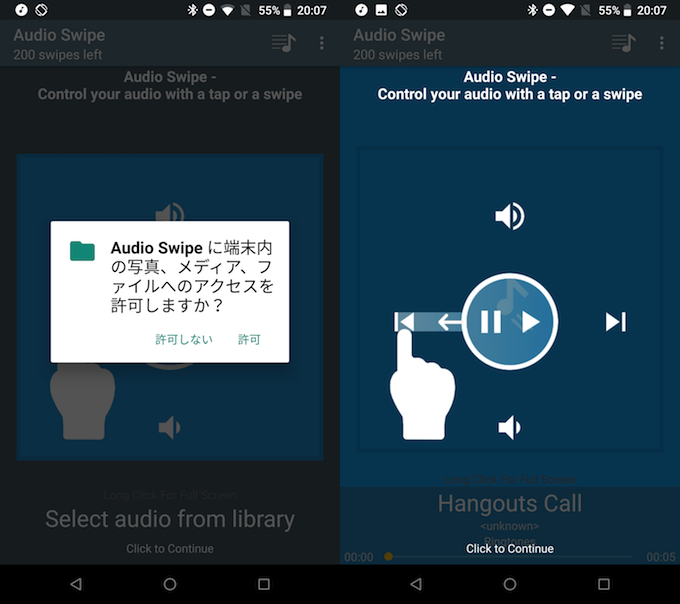 换句话说,如果您使用“Audio Swipe”应用程序,您可以在驾驶时通过简单地点击或滑动屏幕上的任意位置来操作音乐播放器,而无需在查看 Android 屏幕时寻找小“播放”图标或“音量栏”。