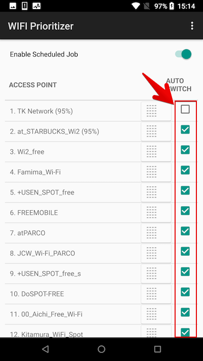 如果取消选中某个接入点,它将不再被选为自动切换目的地。