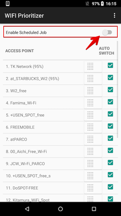 如果关闭应用程序顶部屏幕上的“启用预定作业”开关,该功能将被禁用,并且连接目的地将不会切换。