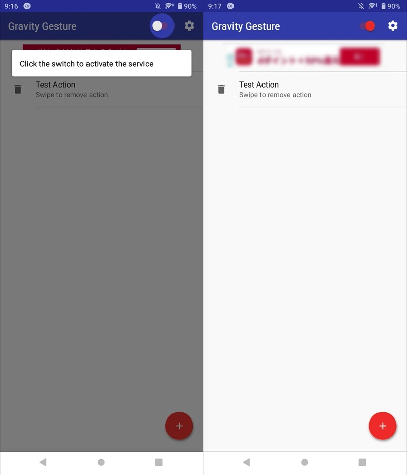 在重力手势的顶部屏幕上,启用顶部开关即可开始使用。