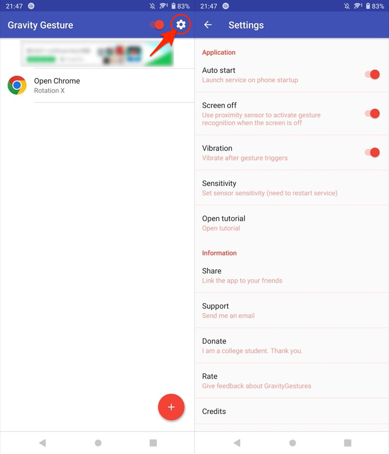 重力手势允许您触发特定功能以响应智能手机的特定动作,例如摇动或旋转。