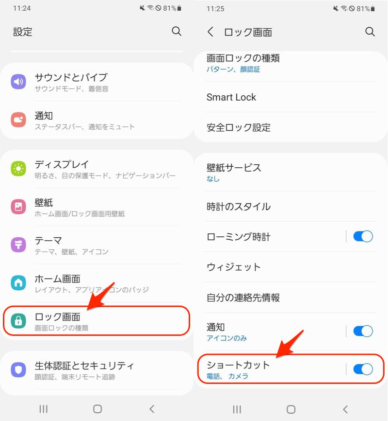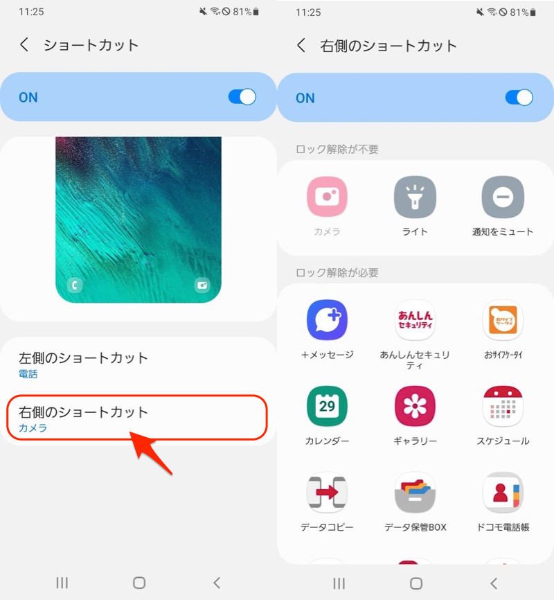 对于 Galaxy,您可以将锁定屏幕快捷方式更改为标准设置。