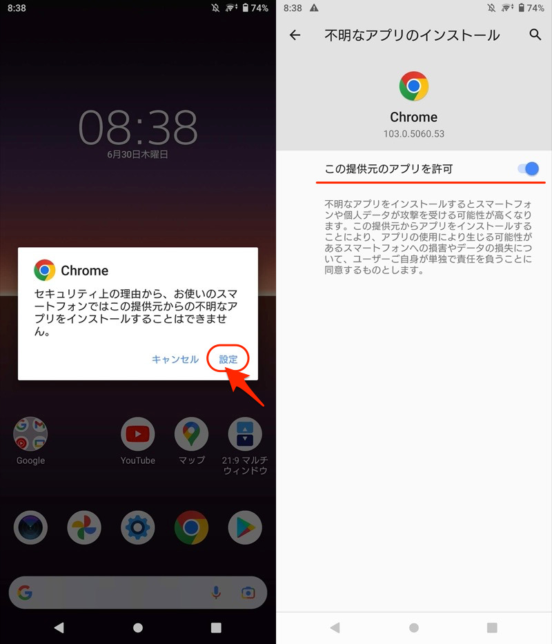 详细内容请参见相关文章【如何在Android上安装未知来源的应用程序!允许使用您的智能手机的 APK 文件] 进行了解释。