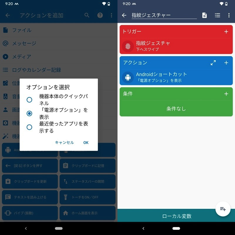(左)宏示例(右)可以使用指纹手势进行屏幕截图