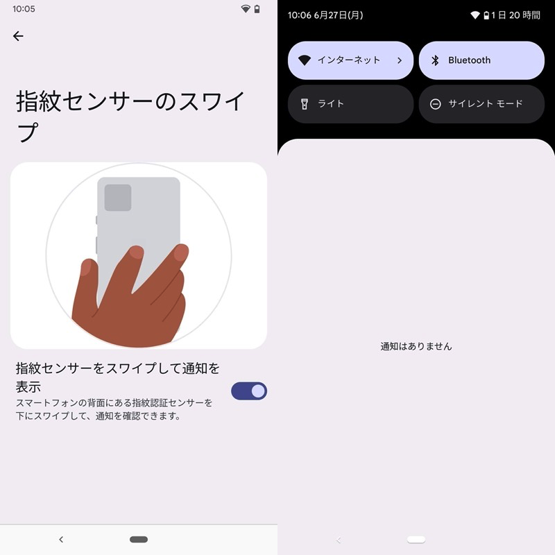 (右)只需触摸指纹传感器即可调出通知抽屉。