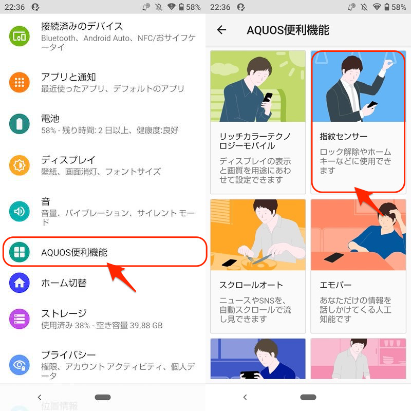 从设置AQUOS实用功能→指纹传感器如果您继续