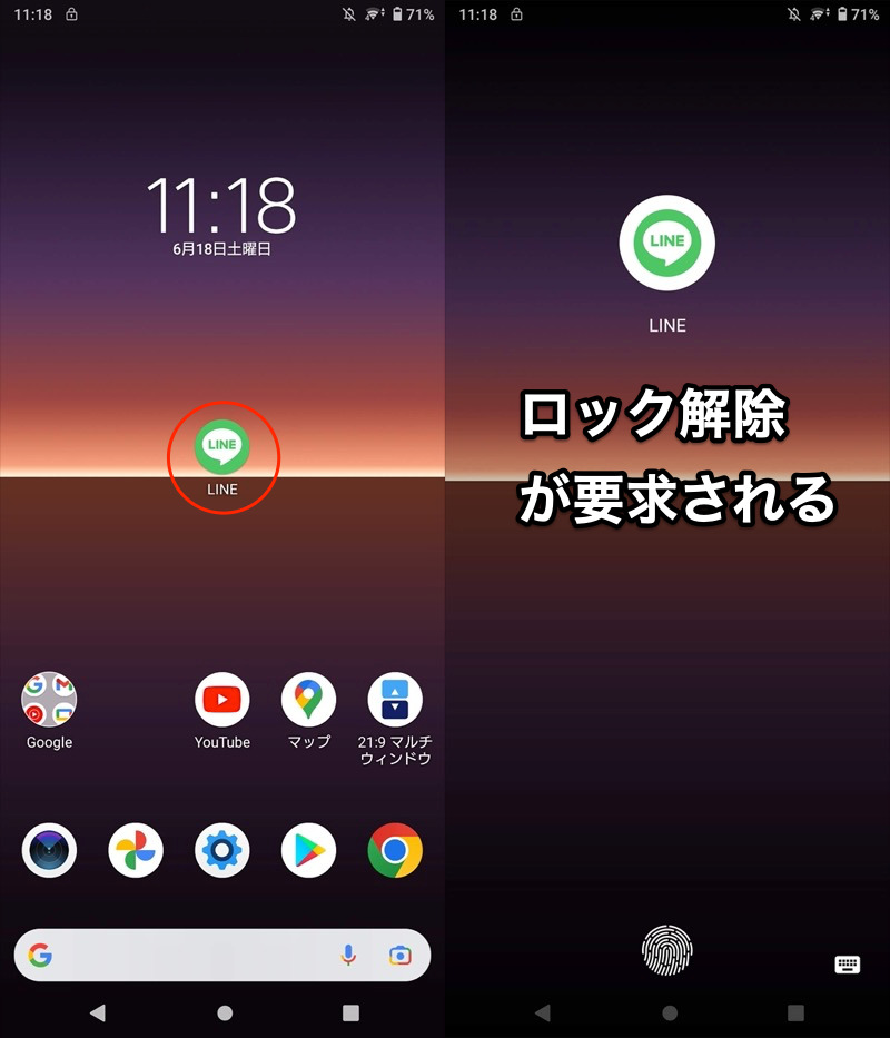 例如,您可以在 LINE 应用程序上设置密码并使用指纹解锁。