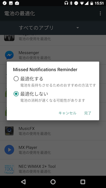 如果应用“电池优化”,则应用程序无法正常运行的风险很高,因此这里我们将其从优化目标中删除。