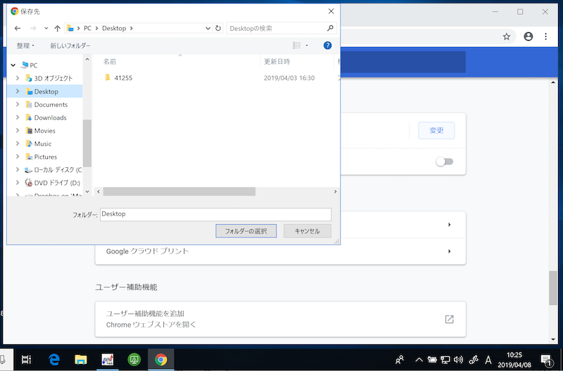 将显示“保存目的地”对话框,因此只需选择要设置的新文件夹即可。
