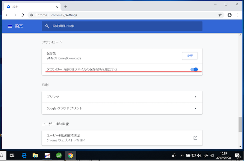 转到Chrome“设置”中的“下载”项,选中“下载前询问每个文件的保存位置”。