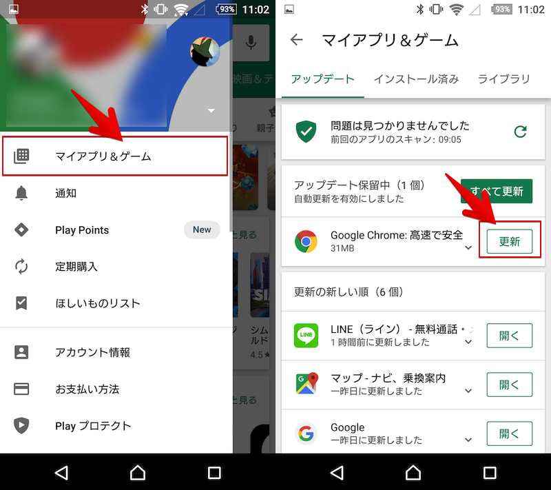 版本更新可以从 Google Play 的“我的应用程序和游戏”→“更新”进行。