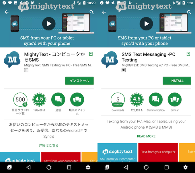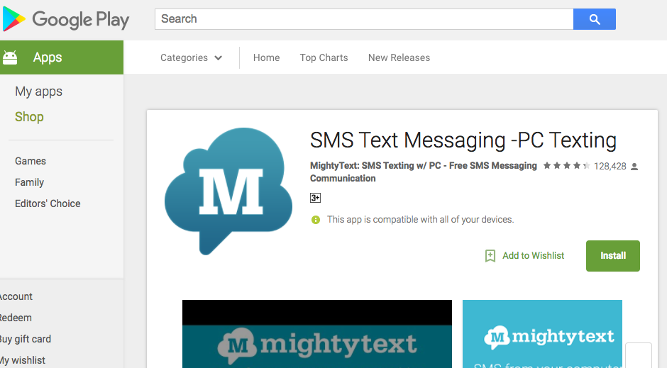 ・・・*注意* – MightyText 通过您的应用程序发送和接收短信 – 您的运营商将向您收取手机短信的费用,就像您自己发送短信一样。