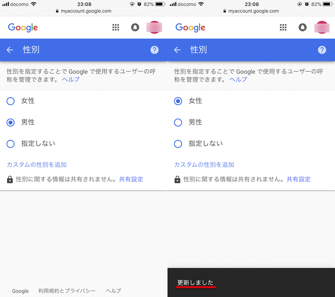 您可以通过转到“性别”项目并点击您想要更改的性别的复选框来立即更新。
