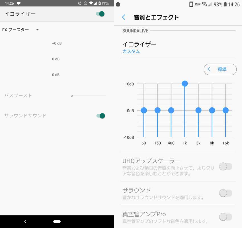 (左)Pixel 系列的均衡器设置 (右)Galaxy 系列的均衡器设置