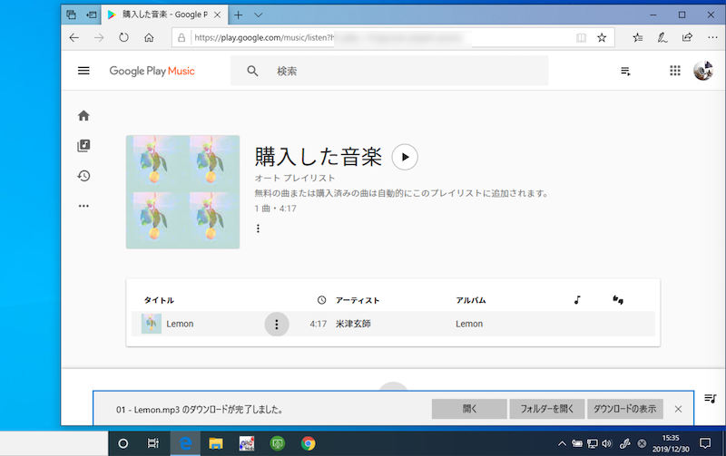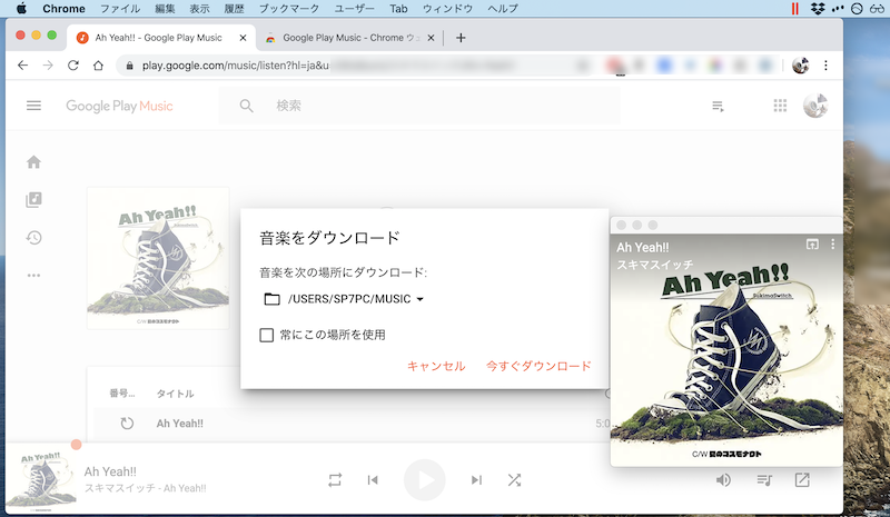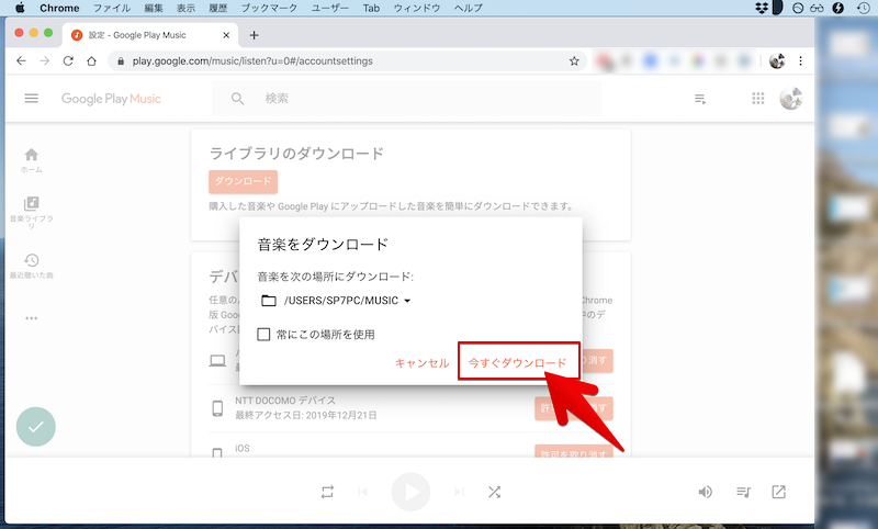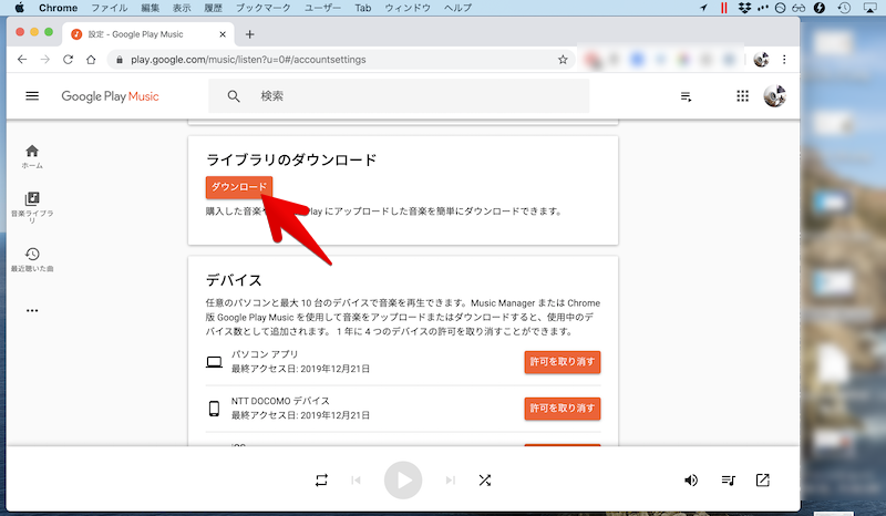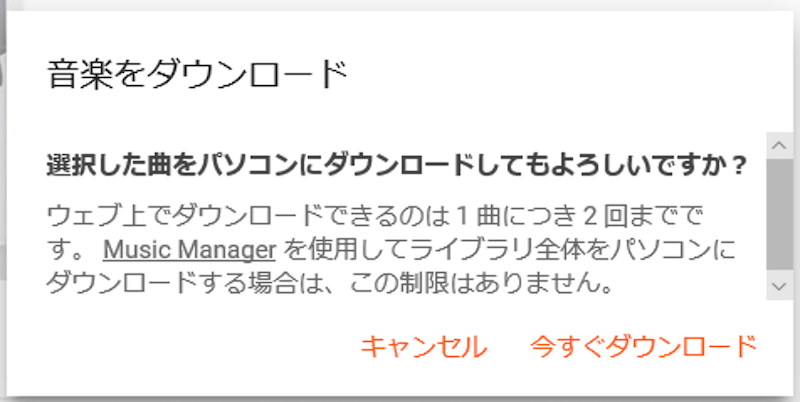 選択した曲をパソコンにダウンロードしてもよろしいですか? ウェブ上でダウンロードできるのは1曲につき2回までです。 Music Managerを使用してライブラリ全体をパソコンにダウンロードする場合は、この制限はありません。