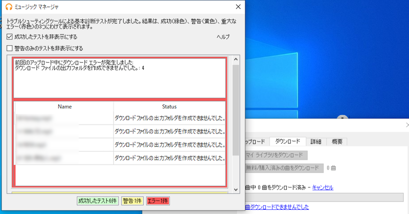 ●曲ダウンロードできませんでした ダウンロードファイルの出力フォルダを作成できませんでした
