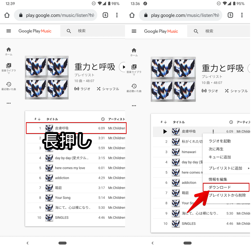 例如,如果目标是下载播放列表“Mr.Children”,则添加歌曲时会自动保存该播放列表。
