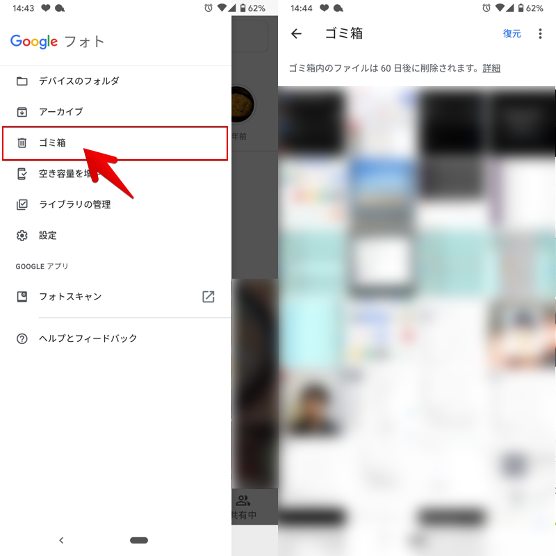 从 Google 相册中删除的照片可以在应用内菜单中找到垃圾桶将被暂时保存,并可在 60 天内恢复。