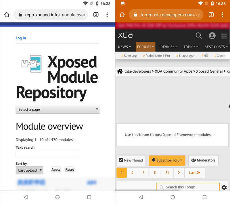 (左)Xpose 模块存储库(右)XDA