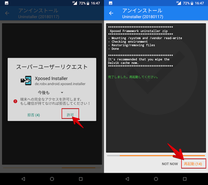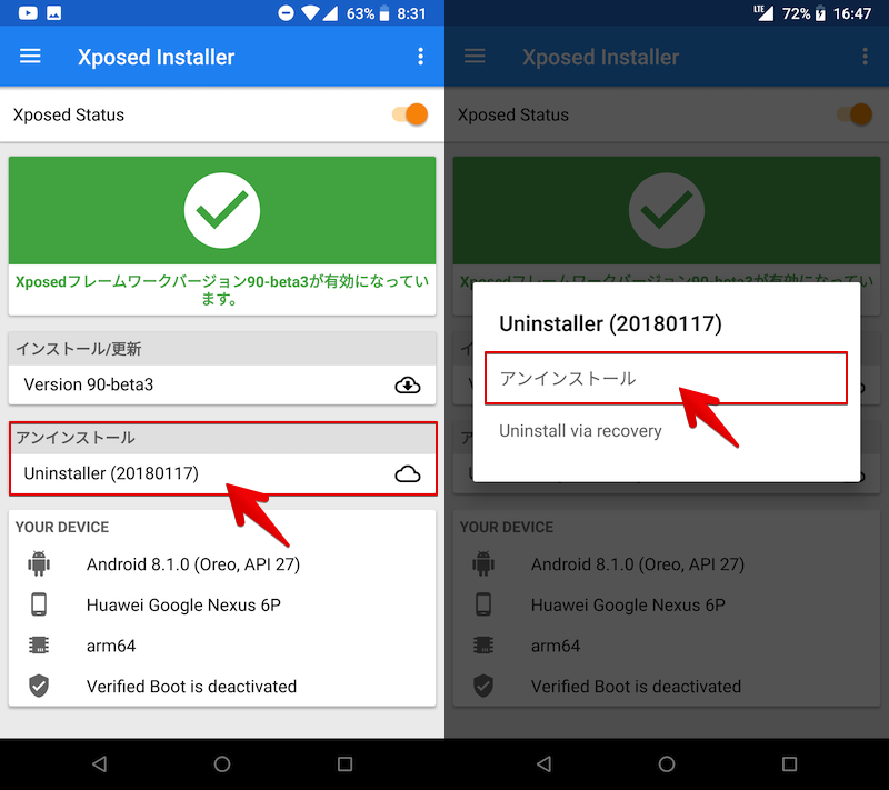 但是,模块和框架系统将保留在Android内部,这可能会导致意外问题,因此请按照说明卸载。