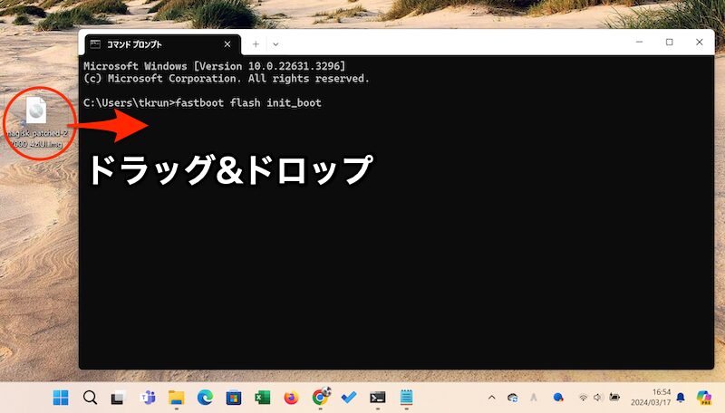 拖放已移动的 magisk_patched-xxx.img 文件,进入带钥匙运行。