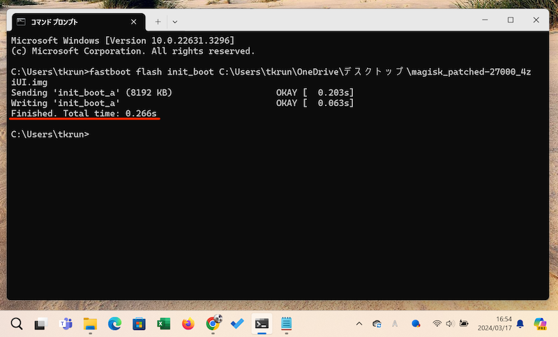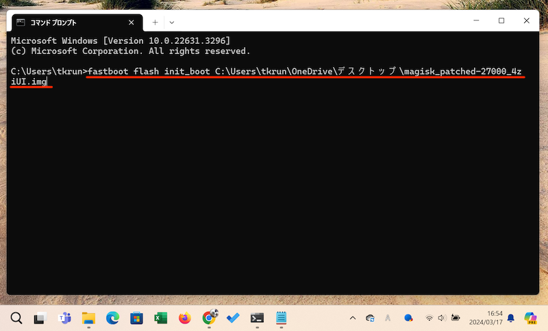 fastboot flash init_boot后的路径根据magisk_patched-xxx.img文件的保存位置而有所不同。
