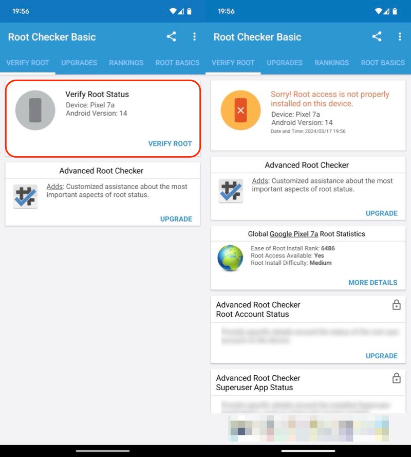 在本文中,我们将以 Pixel 7a(Android 14)root 的情况为例。