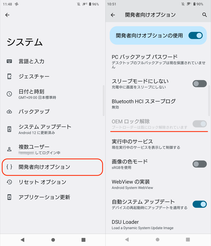 打开开发者选项,OEM 解锁如果出现以下消息,则说明 Bootloader 解锁已成功完成。