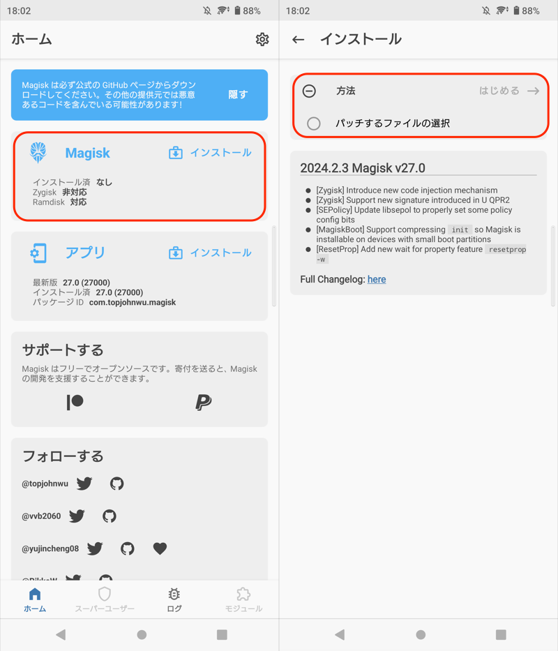 Root 不是官方功能,存在各种风险。在最坏的情况下,操作过程中可能会出现意外错误,Android 可能会停止工作(=禁止)。请注意,无论发生什么情况,您都必须自行承担解决问题的风险。