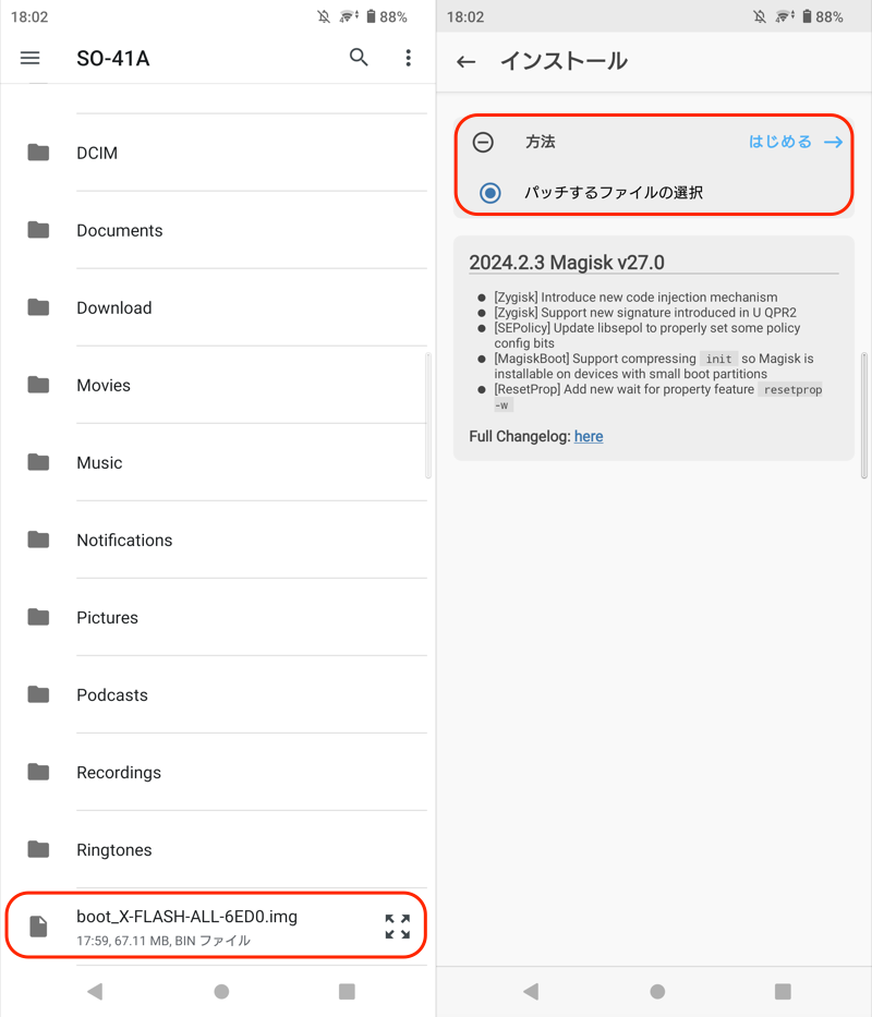 打开Magisk,在安装界面中选择之前准备好的boot_X-FLASH-ALL-xxxx.img作为要打补丁的文件。