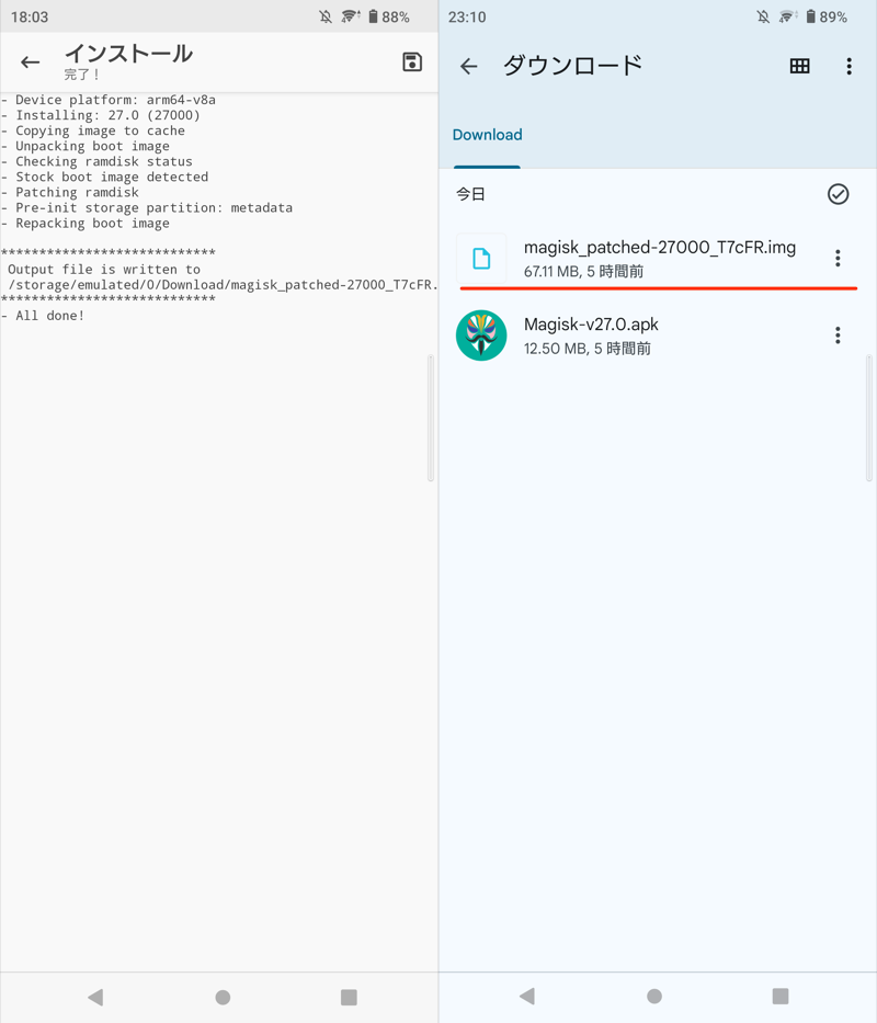 名为 magisk_patched-xxx.img 的文件将保存在内部存储的“Download”文件夹中。