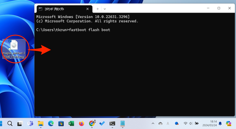 拖放已移动的 magisk_patched-xxx.img 文件,进入带钥匙运行。