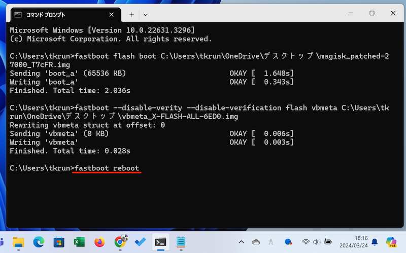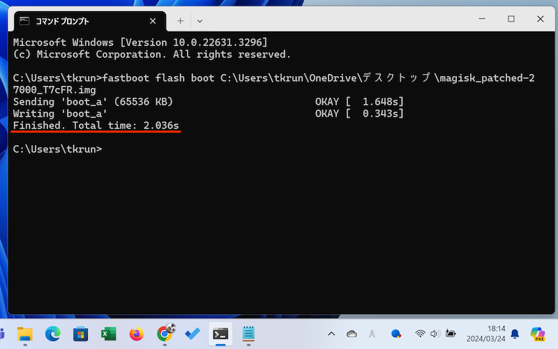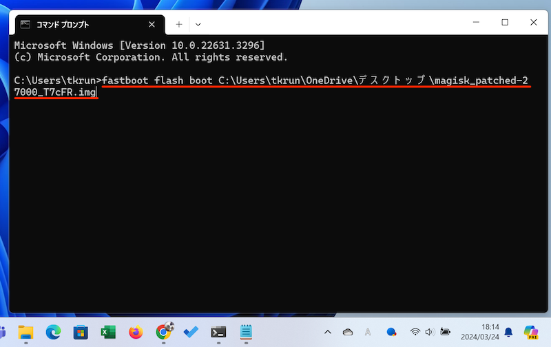fastboot flash启动后的路径根据magisk_patched-xxx.img文件保存位置的不同而不同。