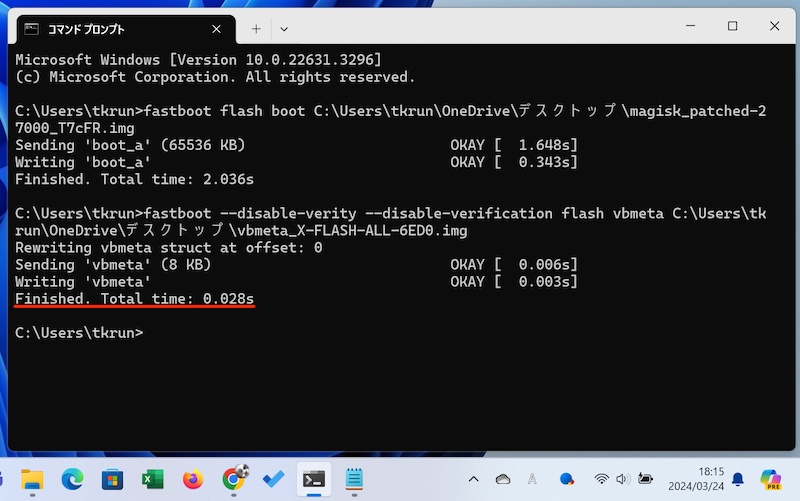 Sending 'vbmeta' (●● KB) OKAY [ ●●s] Writing 'vbmeta' OKAY [ ●●s] Finished. Total time: ●●s