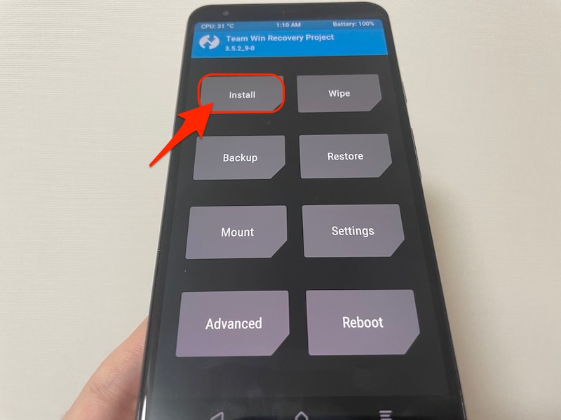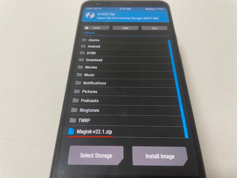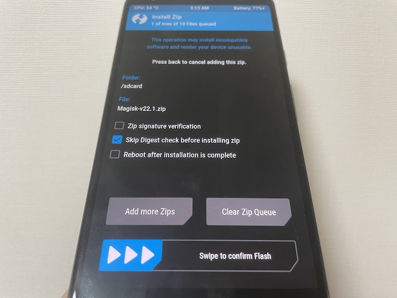 3. 使用 TWRP 安装 Magisk Zip 文件
