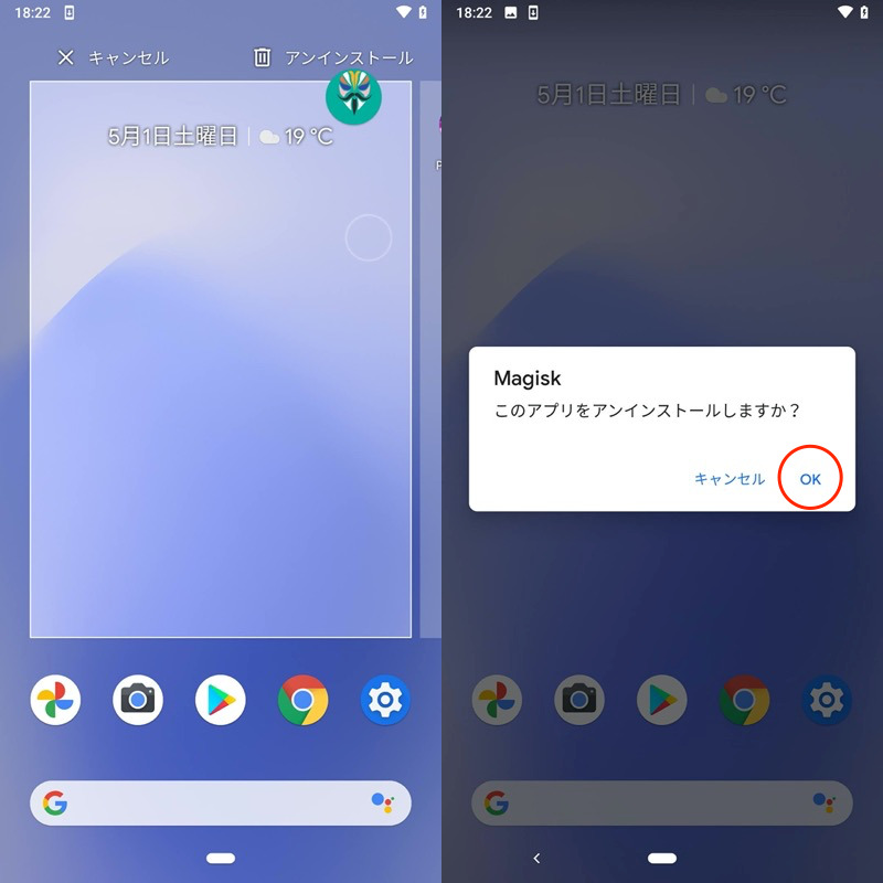 Magisk 应用程序本身不会自动消失,因此请从主屏幕手动卸载它。