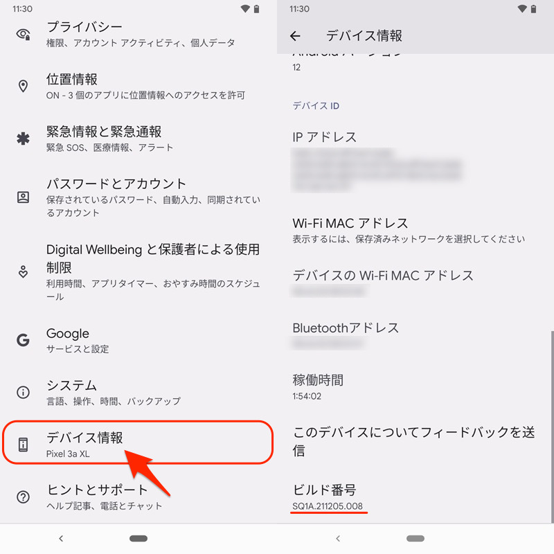 ▼Pixel 3a XL 示例(截至 2021 年 12 月)