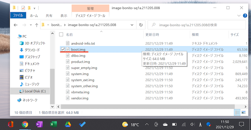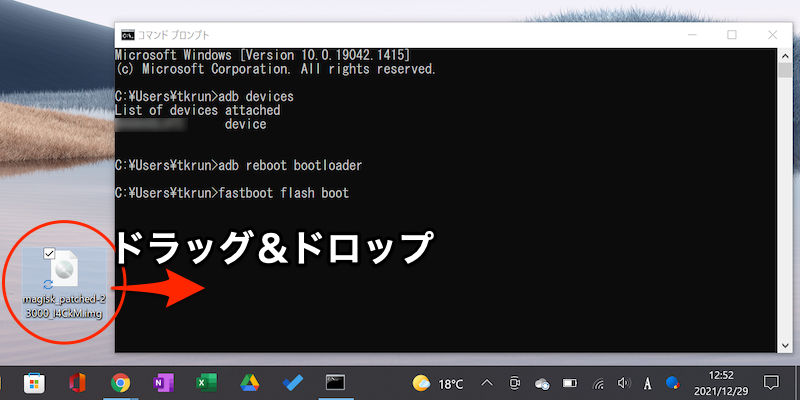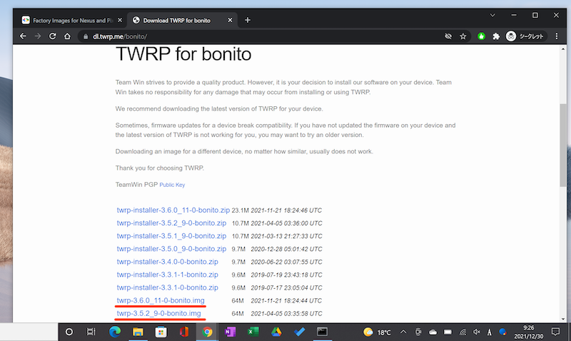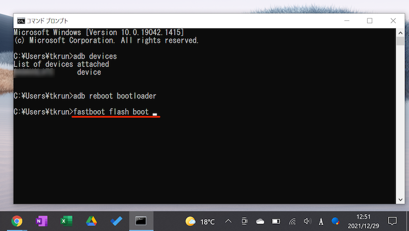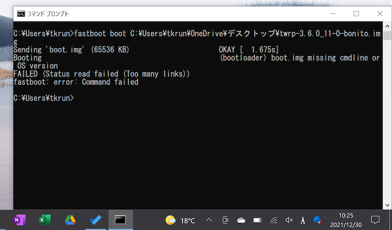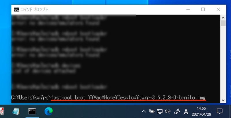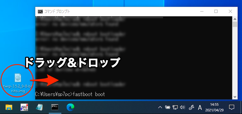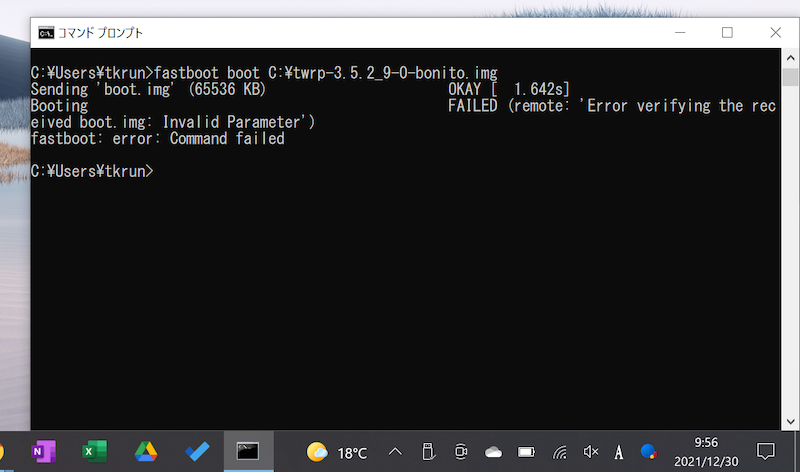▼使用适用于 Android 9 的 Android 11/12 的 img 文件(例如 twrp-3.6.0_11-0-bonito.img)的示例