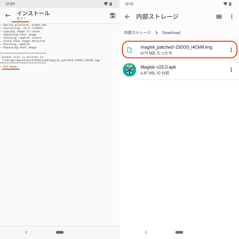 名为 magisk_patched-xxx.img 的文件将保存在内部存储的“Download”文件夹中。