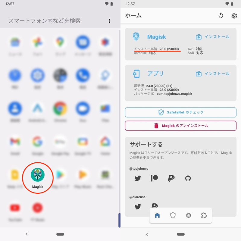 如果 Magisk 顶部屏幕上显示“Installed”,则表示已安装。