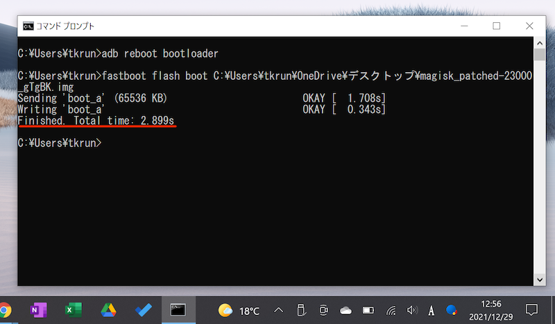 fastboot flash启动后的路径根据magisk_patched-xxx.img文件保存位置的不同而不同。